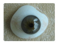 玻璃义眼:是采用德国劳莎地区产的冰晶石特种玻璃材料制作的义眼。玻璃材料的义眼的优点是光泽度高,耐磨,缺点是着色点底,调到健眼的颜色几乎不可能,使用不当易于破损,不易修复。