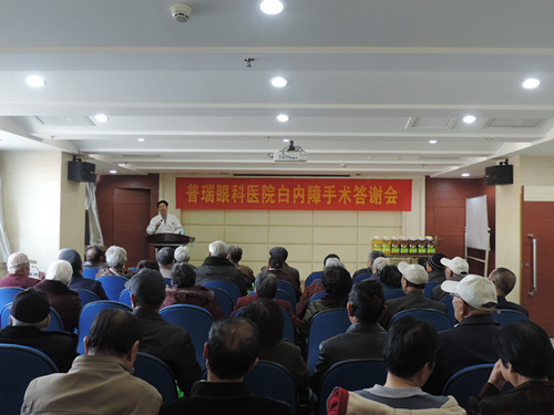 立冬时节,为了感恩广大患者对医院的信任及认可,营造一个敬老、爱老、养老、助老的氛围,呼吁更多人关爱、关注老人眼健康,2014年11月7日,普瑞眼科医院举行了白内障患者答谢会。本次答谢会除了对老患者的答谢回馈外,我院还将面向全市征集300名免费白内障手术患者,为那些需要帮助的老年人解决挂号难,看病难,费用高等问题。