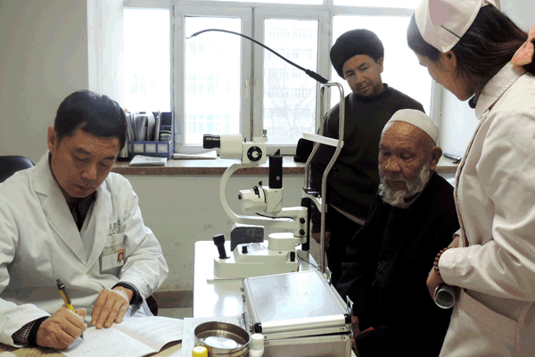 12月3日,乌鲁木齐普瑞眼科医院专家齐聚,为岳普湖县10名严重眼病患者进行了系统的眼部检查及会诊工作。据了解,由新疆维吾尔自治区商务厅联合乌鲁木齐普瑞眼科医院共同开展的“普瑞之光·惠民生光明行”活动,于2014年11月在喀什地区岳普湖县筛查出32名严重眼病患者后,12月1日岳普湖县10名严重眼病患者首批来到普瑞眼科医院接受治疗。