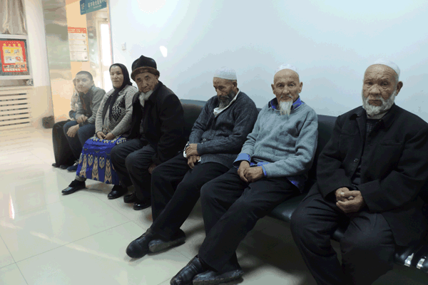 (等待检查的岳普湖县眼病患者们)