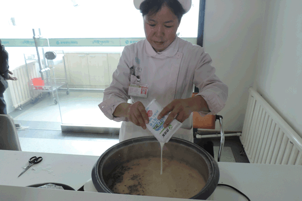 (护理部刘芳护士长为病人们准备奶茶)