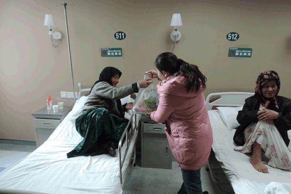 (行政部主任邹华给患者送上新鲜水果)