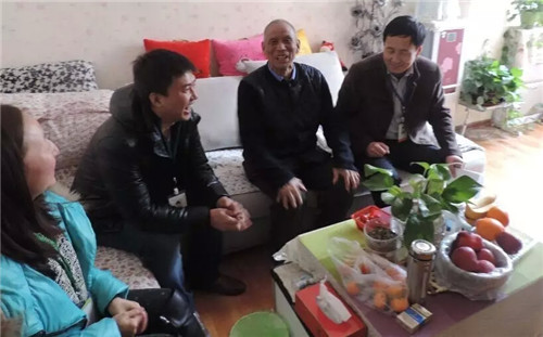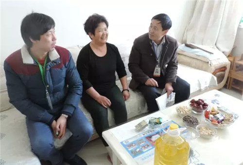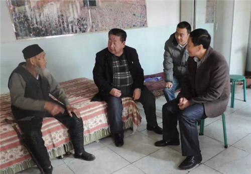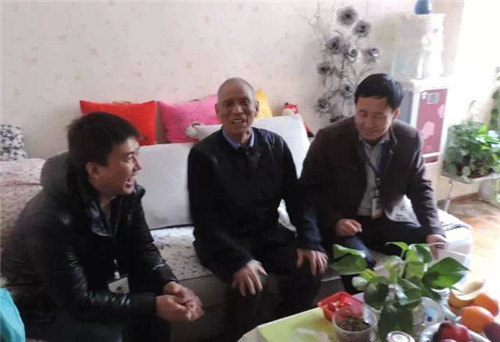工作人员来到米东区长三子镇看望一直接受医院帮助的老患者、老朋友牛生旺老人。