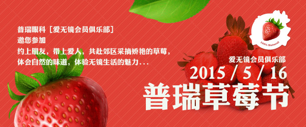在这个阳光明媚,百花盛开的夏季,普瑞草莓节就要开始了。5月16日,约上朋友,带上爱人,相约普瑞眼科“爱·无镜”俱乐部,共赴郊区采摘娇艳的草莓,体会自然的味道,体验无镜生活的魅力。
