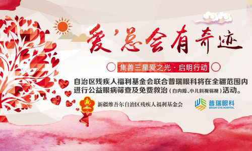同时,为了落实中央号召的精准扶贫的精神,自治区残疾人福利基金会和乌鲁木齐普瑞眼科医院,将带着医生、设备及车辆深入到新疆各地州,为当地的群众进行免费的眼部筛查。为让偏远地区贫困患者真正感受到来自国家和社会的关爱。此次活动将为家庭贫困的成人、儿童、青少年患者实施免费的白内障复明手术、斜视手术、弱视治疗等眼病救助治疗,帮助弱势群体摆脱眼病的困扰,改善视觉质量,使救助患者的生活质量得到有效的提升。