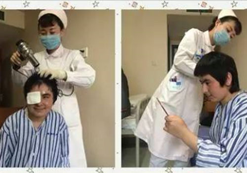 在普瑞眼科医院里,医护人员把则利比亚当成家人一样照顾,更换衣物、洗头、削水果等。看到女儿高兴的样子,父亲阿布来则·乌孜曼非常激动的握着我们的手说:“真的不知道该怎么感谢你们,真的太谢谢你们了,谢谢了......”