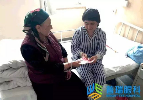家住水磨沟温泉路的77岁维吾尔族老奶奶吐尔逊汗,1月初在普瑞眼科医院做了右眼白内障手术,前几天在电视上看到则丽比亚的新闻后,心里一直个牵挂着这个小姑娘。今日刚办完左眼住院手续后便急忙找到工作人员要去看望则丽比亚。老奶奶一边聊天一边爱怜的抚摸着则丽比亚的头说:“奶奶在电视上看到了你的新闻,今天过来主要是想尽自己的一点绵薄之力,好孩子这600块钱你们先拿着用,回去多买点好吃的养好身体。”看到奶奶慈爱的脸庞,则丽比亚表示一定好好照顾自己,争取早日康复。