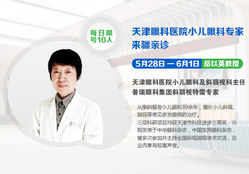 5月28日-6月1日,天津眼科小儿斜弱视专家岳以英来疆亲诊