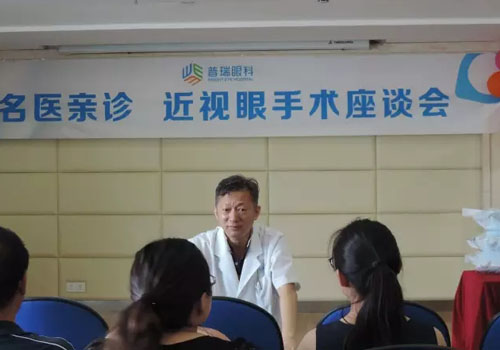 接着主持人给大家讲述普瑞眼科的发展历程,让大家对普瑞眼科有一个进一步的了解。然后又给在场的朋友讲述了近视手术的发展历程,以及不同的近视患者所要选取的不同类型的手术方式。他介绍到,随着科学技术的进步,近视手术也越来越被人们所接受。现在近视手术已经相当成熟,人们开始追求更好的视觉质量。于是“全眼定制”极速全激光飞秒成为近视患者的首选手术方式,它能够保证术后视力在1.0的前提下,让人获得更好的视觉效果。当然近视患者具体适合哪种手术还要做一个详细的术前检查才能确定。
